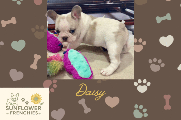 Hi, I’m Daisey, a Female Blue fawn pied French Bulldog🐾 I’m gorgeous and, yes, I already have opinions🥰 Daisey is known for her adorable Frenchie “talk” and her undeniable diva 👑🌟personality, making her endlessly entertaining and impossible not to love💖 I’m looking👀 for a family who enjoys a pup with character, confidence, and charm💃 Daisy expects her new home to include: